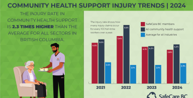 Recent 2024 data from WorkSafeBC reveals concerning trends. Care workers experience injuries at significantly higher rates than workers in other sectors: