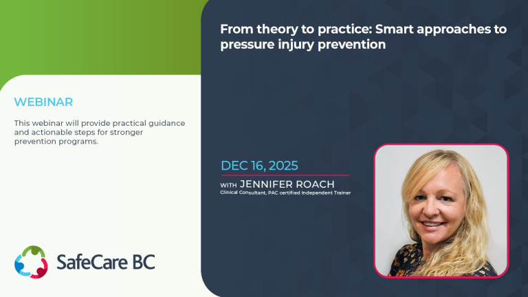 SafeCare BC is your health and safety association. Our goal is to help you create a healthier and safer workplace through evidence-based education, leadership, and collaboration.