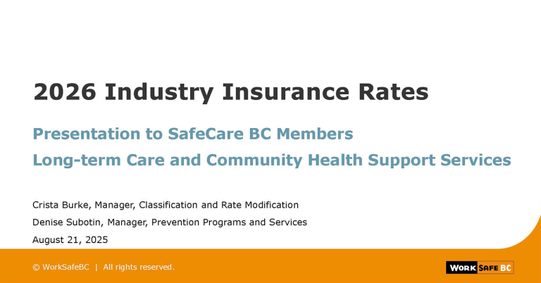 When your injury claims are lower than the sector average, you’ll receive a discount on your WorkSafeBC premiums. A safe and healthy workplace is something we should all strive for. Below you will find the latest injury trends in long-term care and home and community care.
